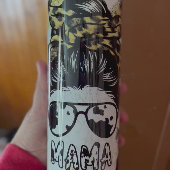 Mama life cow leopard print tumbler